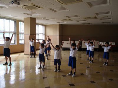 今朝も元気に英語ラジオ体操第1、第2をしました。