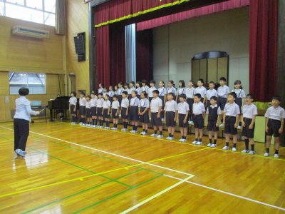 教頭先生の指揮に合わせて、伸び伸びと歌っていました。