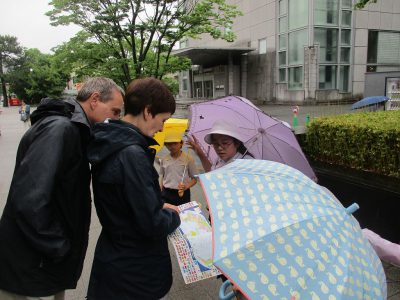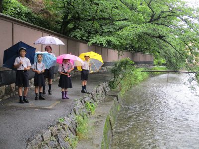 ホタルとお別れし、雨の中をルンルン気分の子ども達。