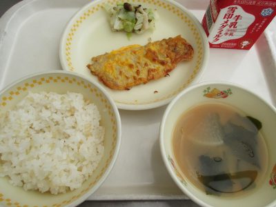 今日の献立は「豚肉のピカタ、きのこの塩昆布和え、大根の味噌汁」でした。