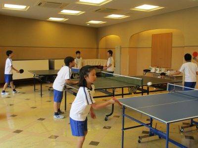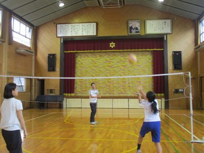 早朝のワールドカップサッカー、ベルギーと日本の試合に触発されて、気持ち高ぶるサッカー教室をはじめ、バレーボール教室も卓球教室も、最後ということで、張り切ってプレーをしていました。