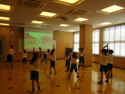 今学期最終の英語朝体操です。