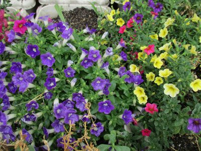 これは「れんげ縦割り班」でプランターに植えた花々です。
