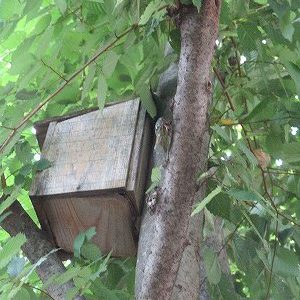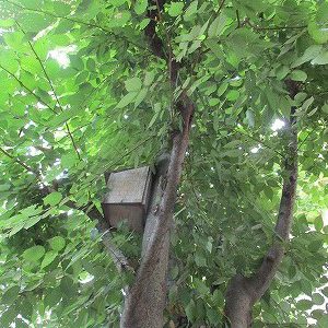 校舎北側のケヤキの木には、鳥の巣箱を設置しています。