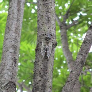 巣箱のそばで、クマゼミが一生懸命、鳴いていました。