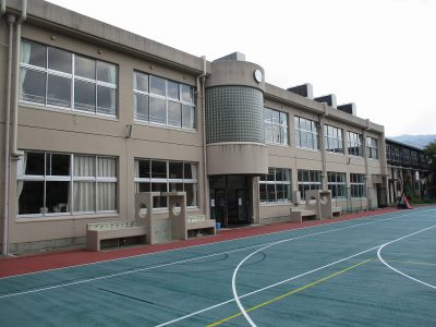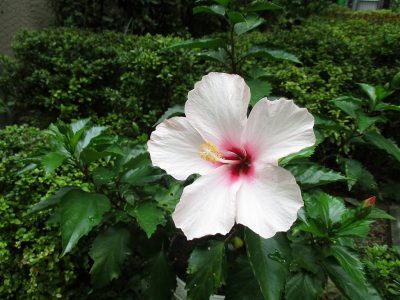 小学校玄関では、ハイビスカスの花が、子ども達を待っていました。