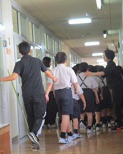今日は低学年・中学年が、避難訓練をしました。