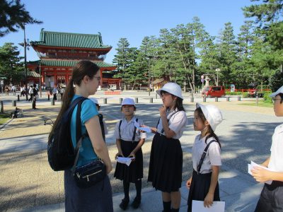 子ども達は、この活動で英語や世界について学習しますが、最も為になるのは、笑顔で柔軟に接して下さる外国人観光客の方々の対応です。