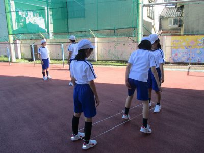 前半は「ゴム跳び」をしました。