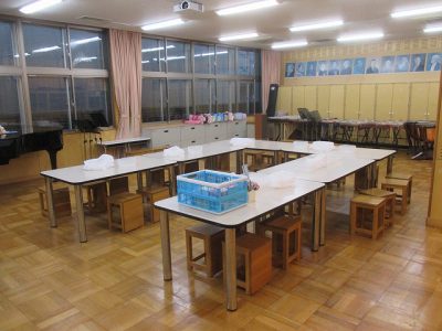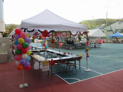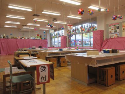 今日は午後から保護者会役員のお父さんお母さん方を中心に会場設営を進めてくださいました。