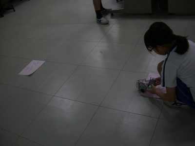 プログラミングクラブは、ロボットが、20秒でゴールに進むプログラムを作りました。