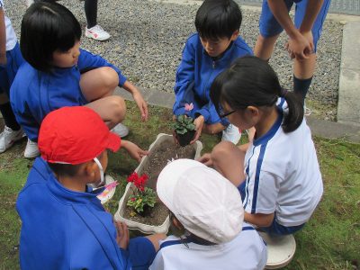 縦割りれんげ班での「花の苗植え活動3日目」です。