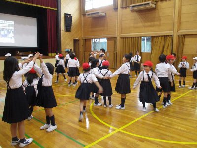 続いて「リスと木とキツネ」の英語おにごっこをしました。