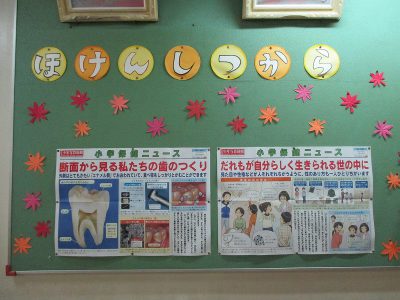 保健室前にも、歯に関する保健ニュースを貼りました。