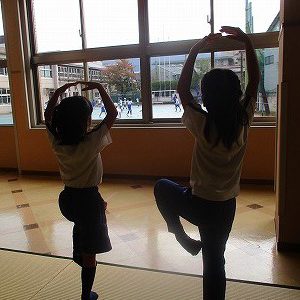 11/9金【英語朝体操・給食・スポーツ教室・保健室・舞台背景】