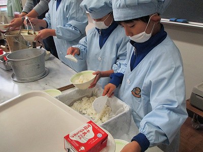 (配膳する2年生の様子です↓)