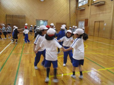また、挨拶表現を学習して、以前にもやったことのある「英語・握手おにごっこ」で楽しみました。