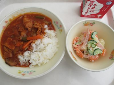 今日は全学年でハヤシライス、じゃがいものサラダともにほとんど完食でした!