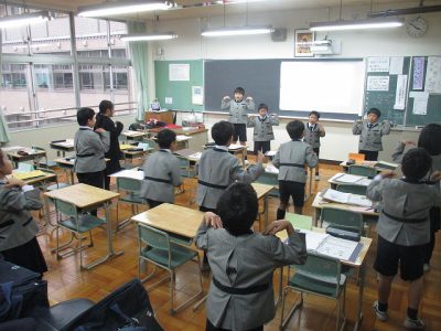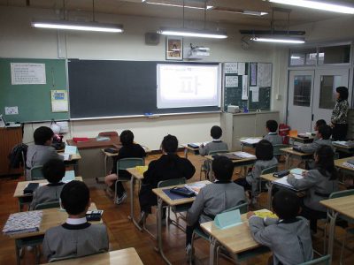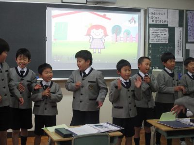 英語のアナウンスで、児童の「英語インプット(聞き取り)」量を増やすねらいで取り組んできました。