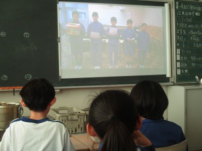 そして、先週金曜日の給食中に、全校生が各教室で録画した映像を見ました。