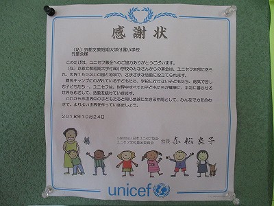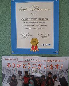 こちらは、日本ユニセフ協会からの感謝状です。