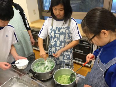 生活部は、調理実習からスタートです。お正月メニューの代表“七草がゆ”をつくって、1年の健康を願おう!と活動を始めました。