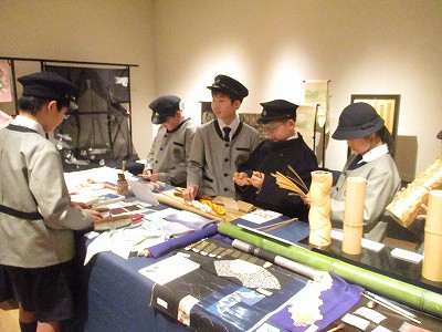 「この絹や竹が、向こうに展示されている工芸品になるんだね。」