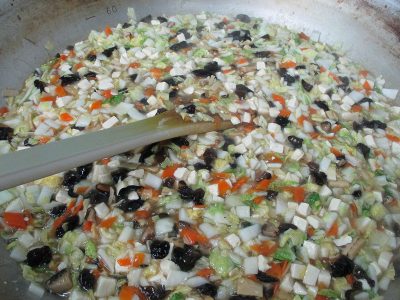 白菜は、蒸してから、出来上がりの直前に鍋に加えて混ぜ合わせるので、シャキシャキとした食感がおいしいです。