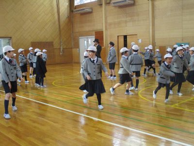 臨機応変に身を守る行動をとること、先生の指示をしっかり聞くためにも、落ち着いて行動を