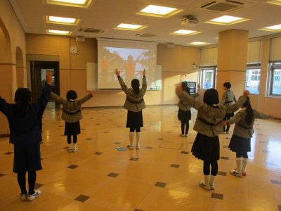 1/18金【英語朝体操・給食・避難訓練②・スポ教・保健室】