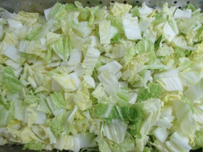 白菜の白い芯の部分はシャキシャキと、緑の部分はしんなりと2つの食感がおいしいです。