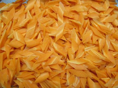 ・「さつまいもは、かたくて、まな板の上に置くとゴロゴロ転がるので、同じ幅に切るのが難しいです。丁寧に調理しているので、残さず食べてほしいです!」