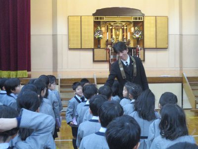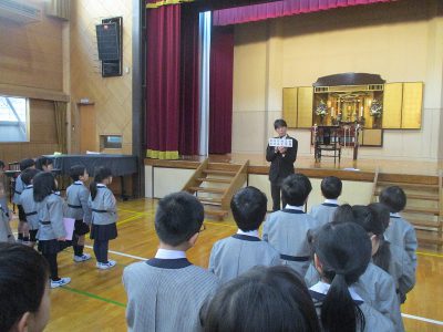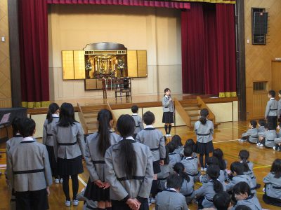 礼拝では、2月の知恩院参拝に向け、いつもの仏教聖歌の他、「四弘誓願」や「法然上人頌」のお歌も歌いました。