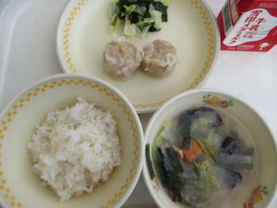 野菜がたっぷり入った中華スープです。白菜、大根などの冬野菜と、人参、ニラの緑黄色野菜が入って、風邪やウイルスから体を守る栄養が、しっかり入っています。温かいスープで体を温めてくれたと思います。