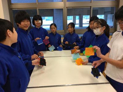 紙飛行機作りでは、完成した後、セロハンテープを貼る位置によって飛び方が変わることが分かりました。