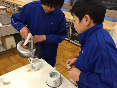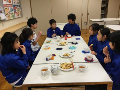 焼く準備の間、男子チームはティーカップやお皿の用意をしてくれていました。