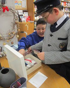 カウンターには、世界の「ありがとう」が書かれた印があり、読み方を確認しようとしながら、はんこを押しました。