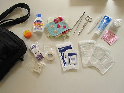 絆創膏やガーゼ、消毒液、ワセリン、体温計、包帯、などなど…