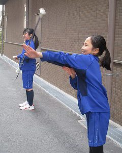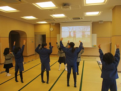 多目的室に子ども達が集まると、朝体操の始まりです。