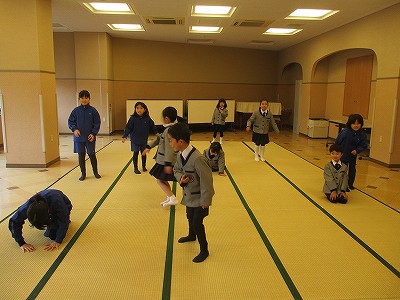 今日は、英語歌遊びの後、みんなが大好きな「だるまさんがころんだ 英語版」をしました。子ども達の英語でのかけ声がすばらしく、とても楽しく充実したひとときでした!