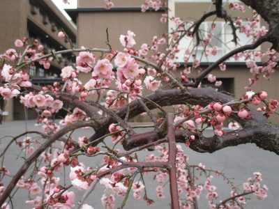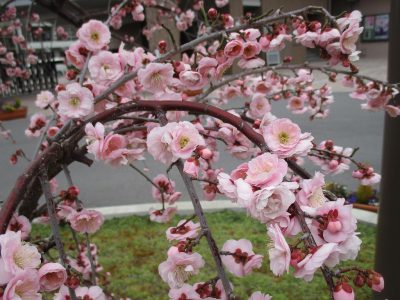 2月13日のホームページト・トピックスに、開花を始めた「しだれ梅」の様子をお伝えしました。あれから十日。足を止めて眺めていたいほどに、花いっぱいになりました。
