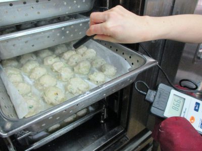 蒸しあがり、温度がしっかり上がっているかを確認して完成です。