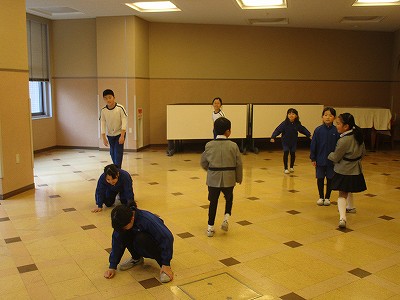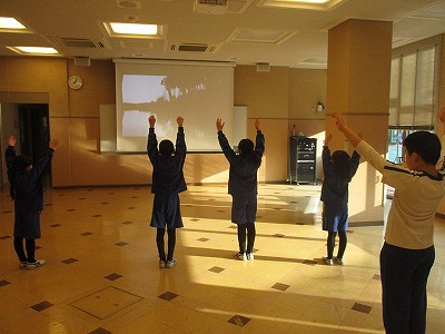 子ども達に、英語の意味を何度か確認しながら、ラジオ体操を進めました。