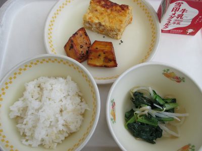 小松菜の炒め物には、もやし、しらすが合わせてあります。小松菜は油で炒めることで、ビタミンAの吸収率が良くなります。小松菜のカルシウムと、しらすのビタミンDも、相性が良い組み合わせで、ビタミンDはカルシウムの吸収率を高めてくれます。