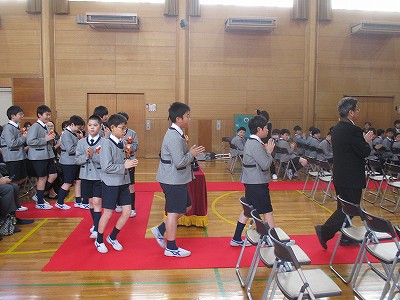 立派に式を終え、退場する6年生。