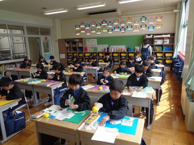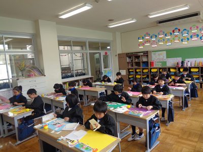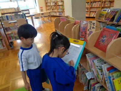 来週は、学校探検のふり返りをした後、先生達のお仕事について学習します。