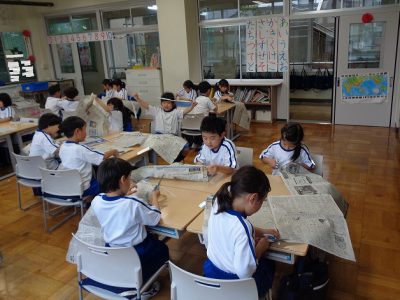 今日の学習は「新聞紙で遊ぼう!」というテーマです。