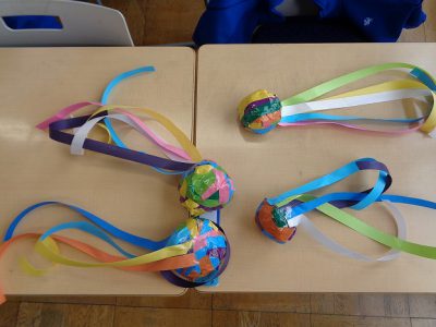 完成した後は、すてきな「流れ星ボール」を持って体育館へ行きました。