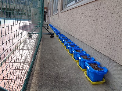 種と同様に、肥料も一粒一粒、丁寧に並べています。