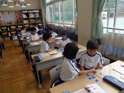 今日は「9の分解・合成」の習得を目指して、ペアでカードゲームをしました。